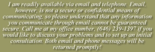 Call Me Directly: (646) 239-1397 If I do not answer, please leave a voicemail and I'll get back to you promptly. Email me by clicking here: kevin.kulic "at" verizon.net The "at" is to avoid spammers using my email address. If clicking the above link does not work for you, simply address an email to me substituting "@" for "at", with no spaces in between. If you need to send anything to me via U.S. mail, please address it to: Kevin R. Kulic, Ph.D. 248 East 73rd Street New York, NY 10021 |